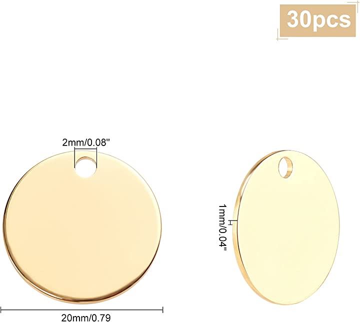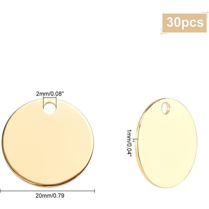 30個 ブラス スタンピング ブランクタグ 20mm ラウンド ペンダント