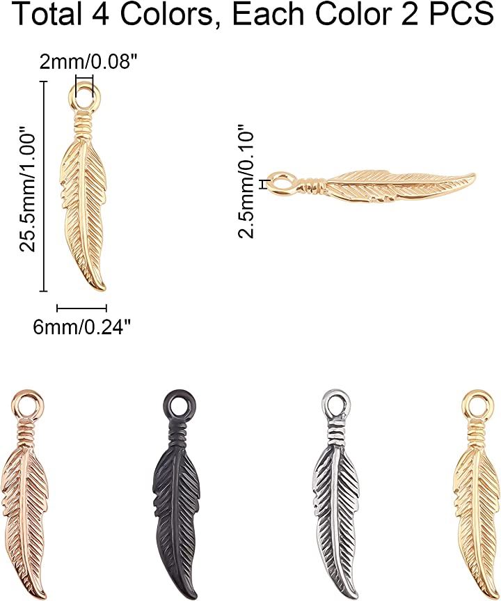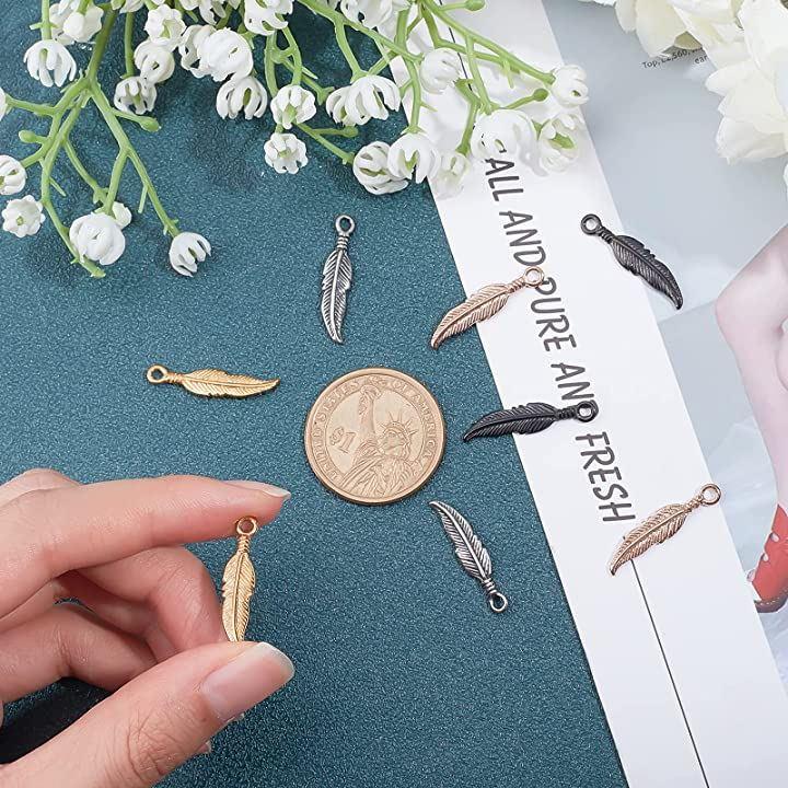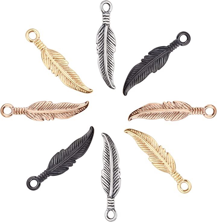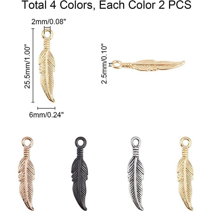 8個 4色 羽ペンダント 羽チャーム ステンレス鋼 イオンプレーティングチャーム
