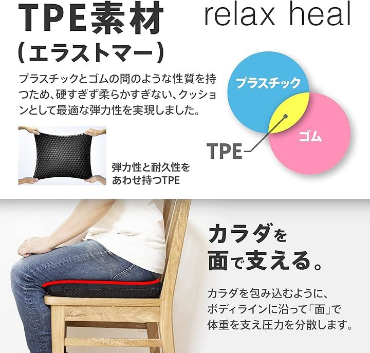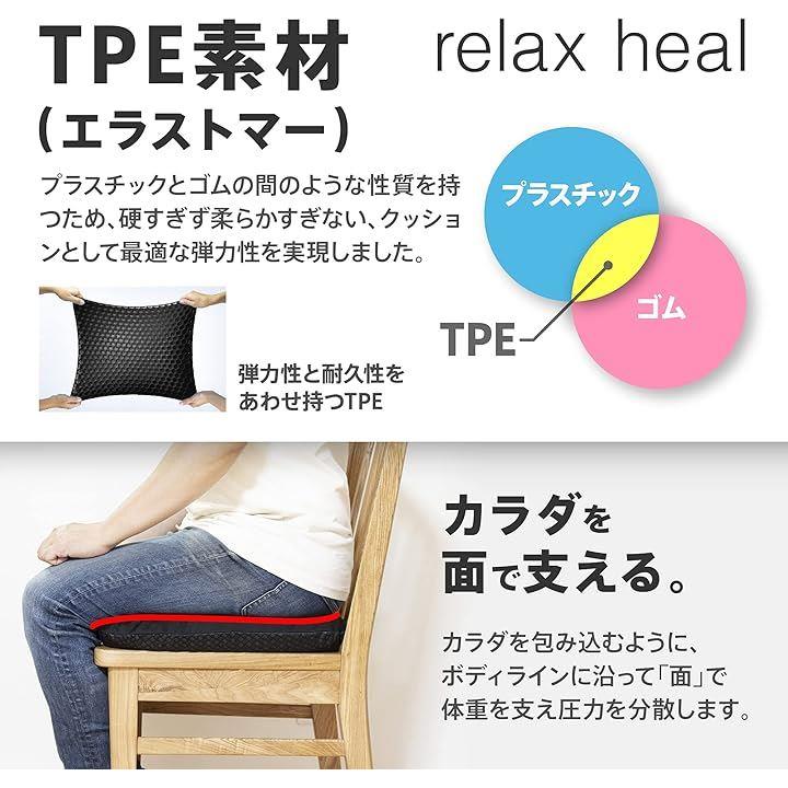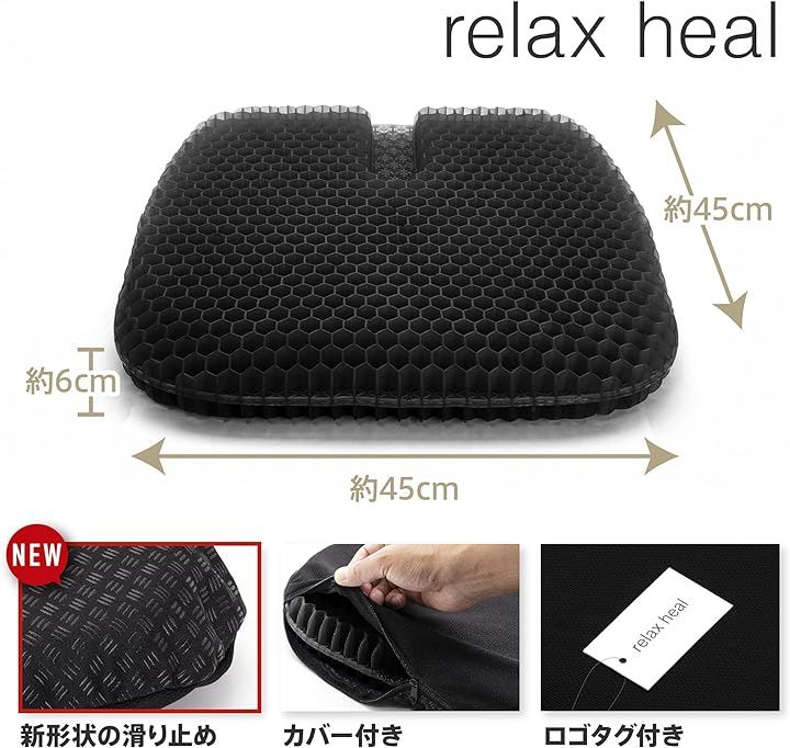 relaxheal ゲルクッション 椅子 お尻が痛くならない ジェルクッション 車 座布団 ハニカムクッション ゴム オフィス 45x45x6