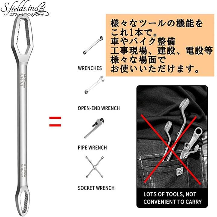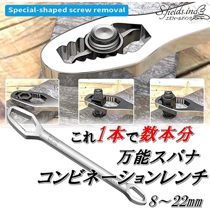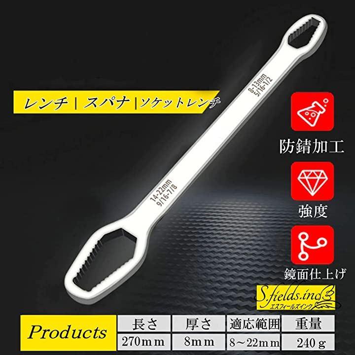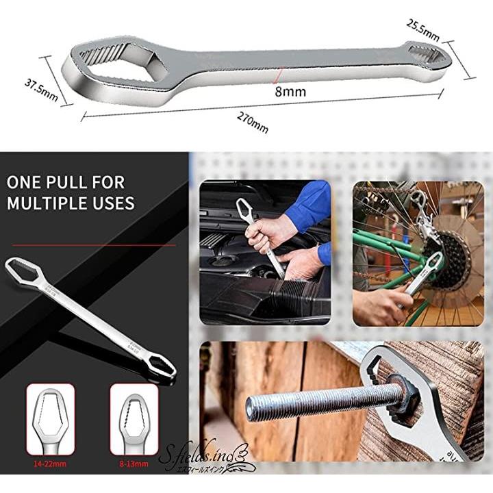 コンビネーションレンチ スパナ 27cm 1本で8mm~22mm 薄型 自転車 バイク