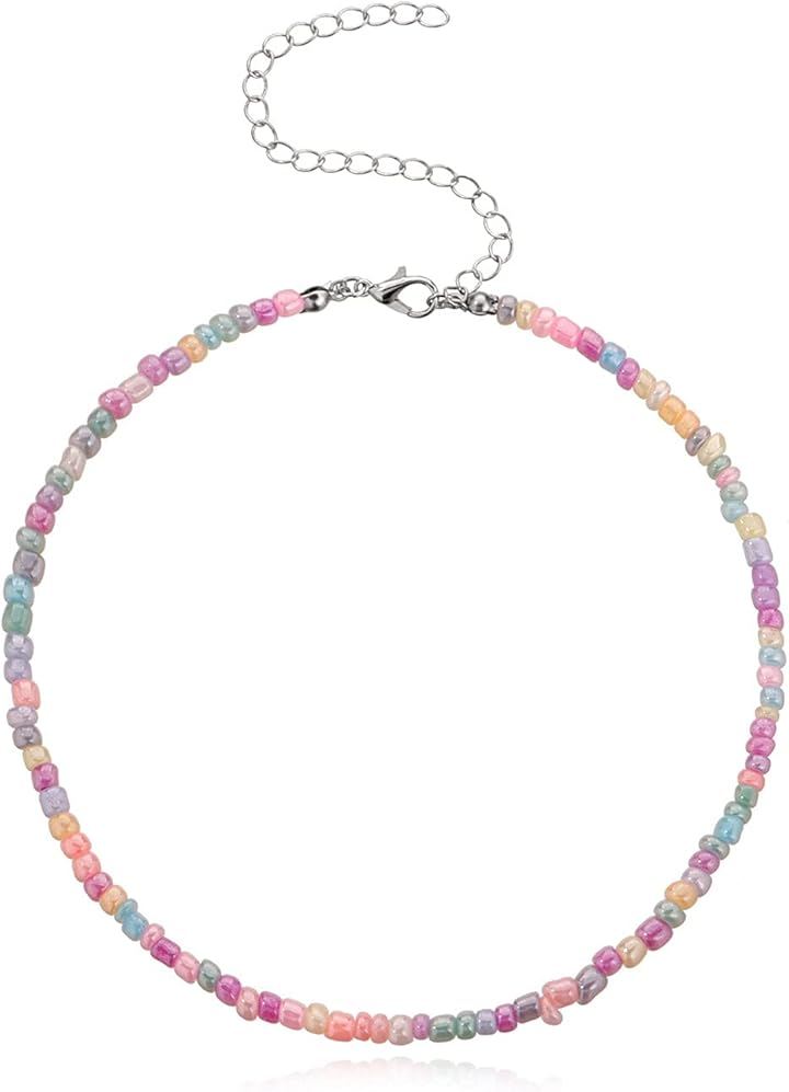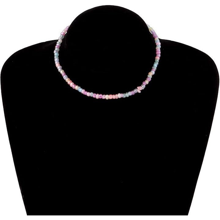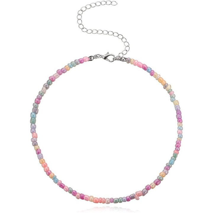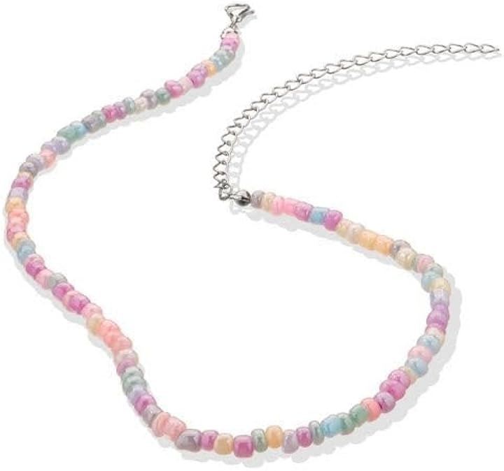 ビーズネックレス レディース パステルカラー カラフル 人気デザイン 淡い色 32-42cm 調節可能 オルチャン アクセサリー