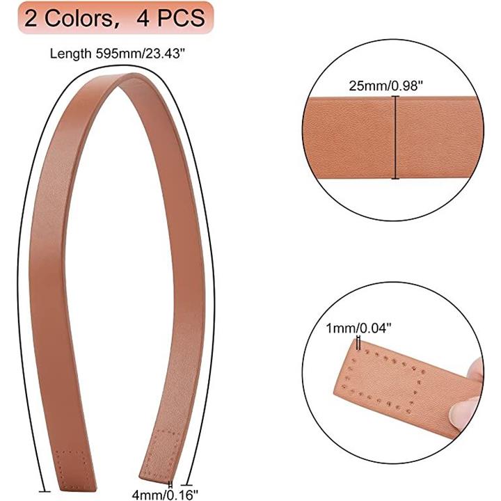 4個 2色入り 持ち手 革バッグショルダーベルト 皮革ストラップ 付け替え 交換用 DIY ハンドメイド バッグ小物