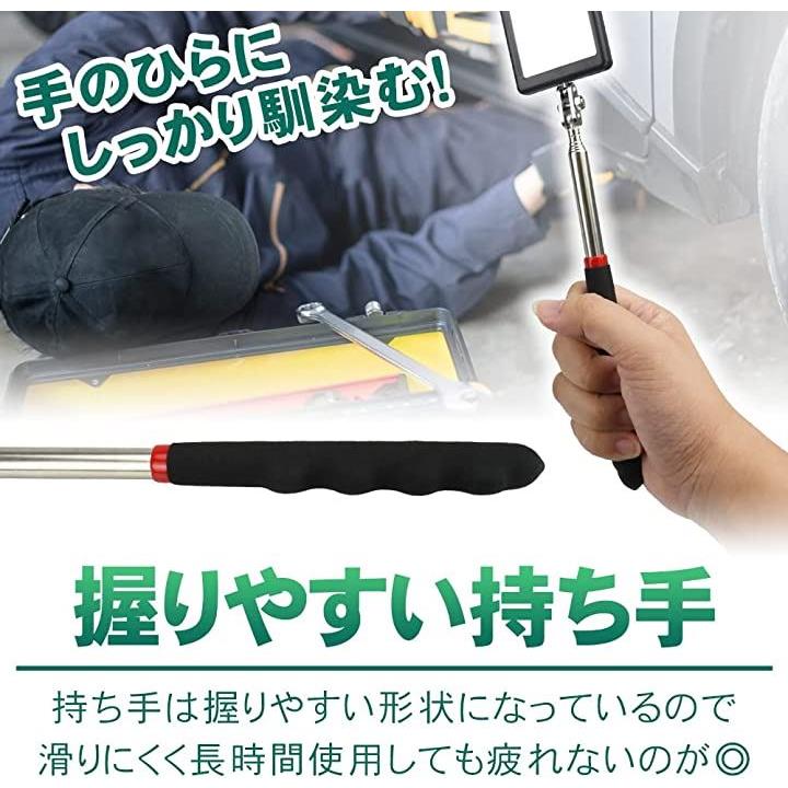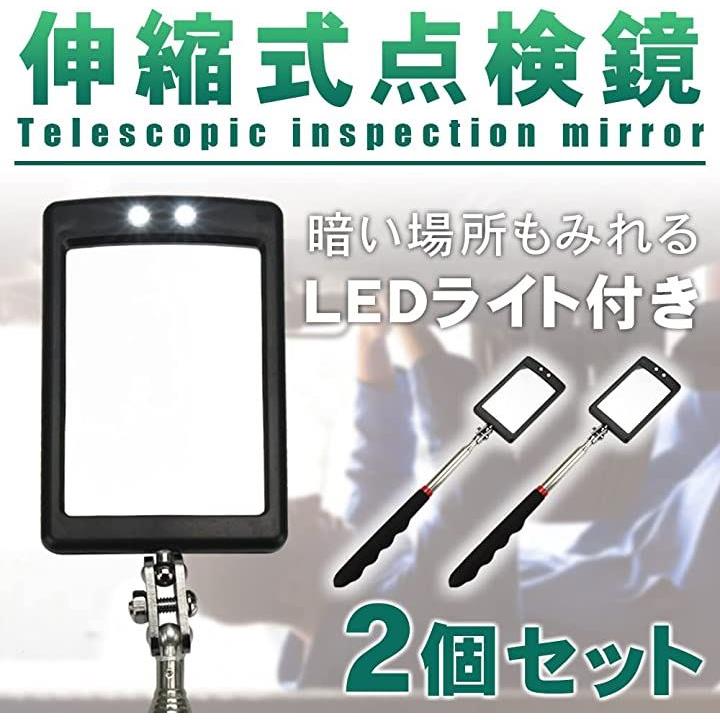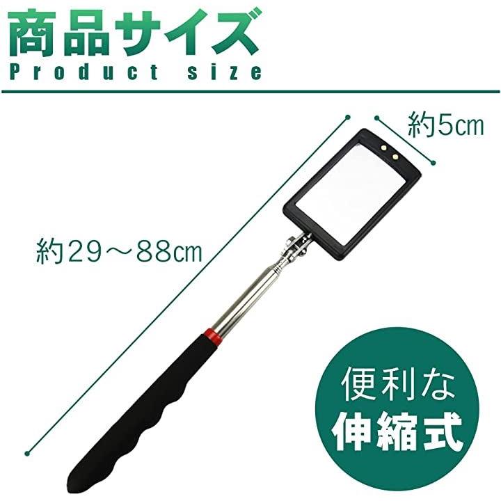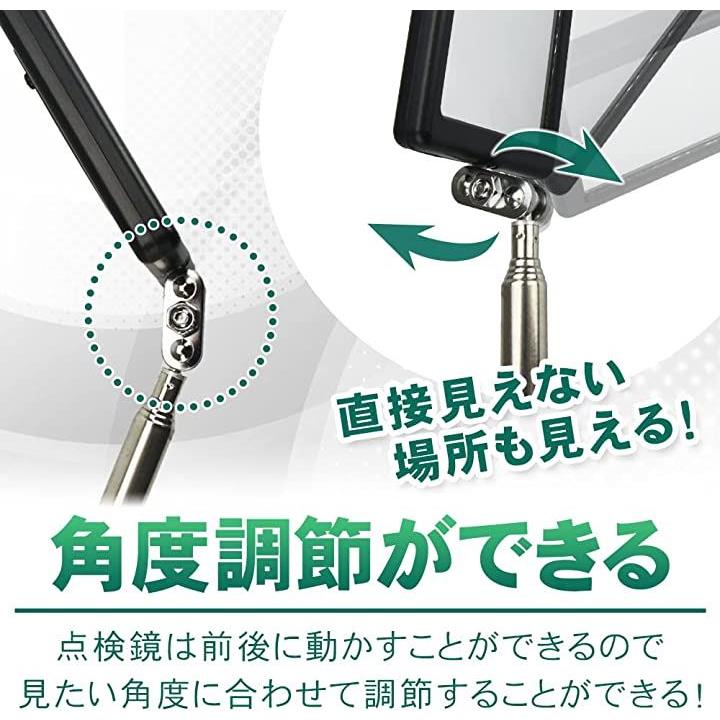 伸縮式点検鏡 棒付きミラー 点検ミラー 角度調整可能 LEDライト付き