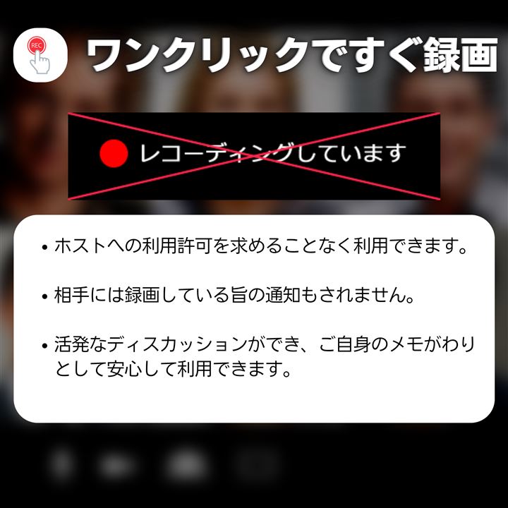 ・Web会議や商談、うっかり聞き逃しを防ごう。ワンクリックで即録画。