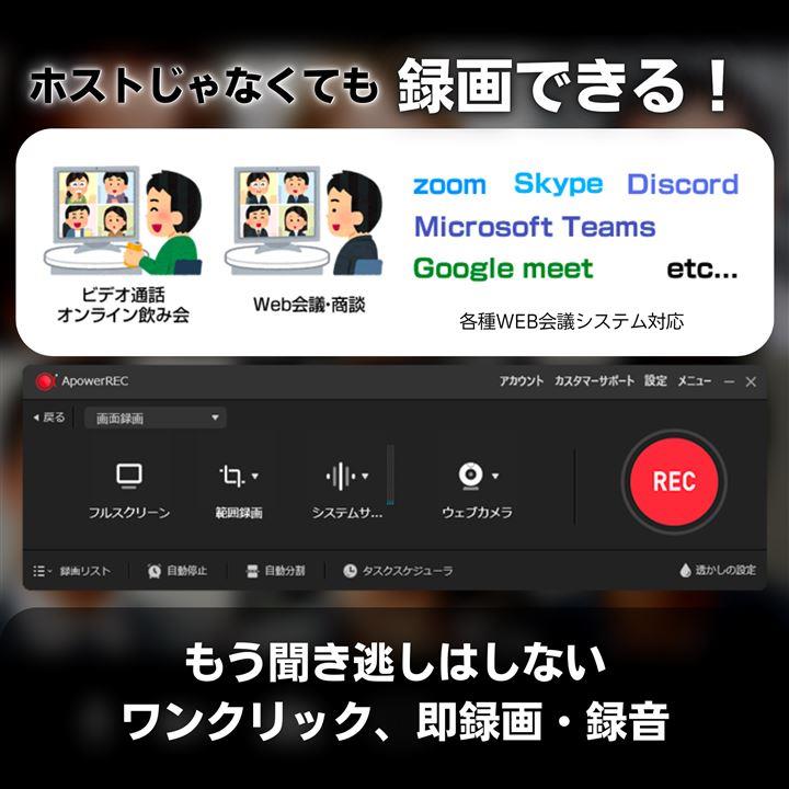 ・「ZOOM」「Skype」「Microsoft Teams」など、どんなWeb会議システムを使用していても録画OK。