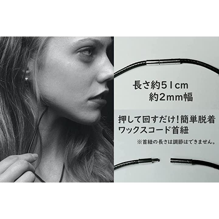 首紐部分はポリエステルに蝋引きを施したワックスコードを使用し、ネックレス全体で軽量化・耐水性を実現しました。
