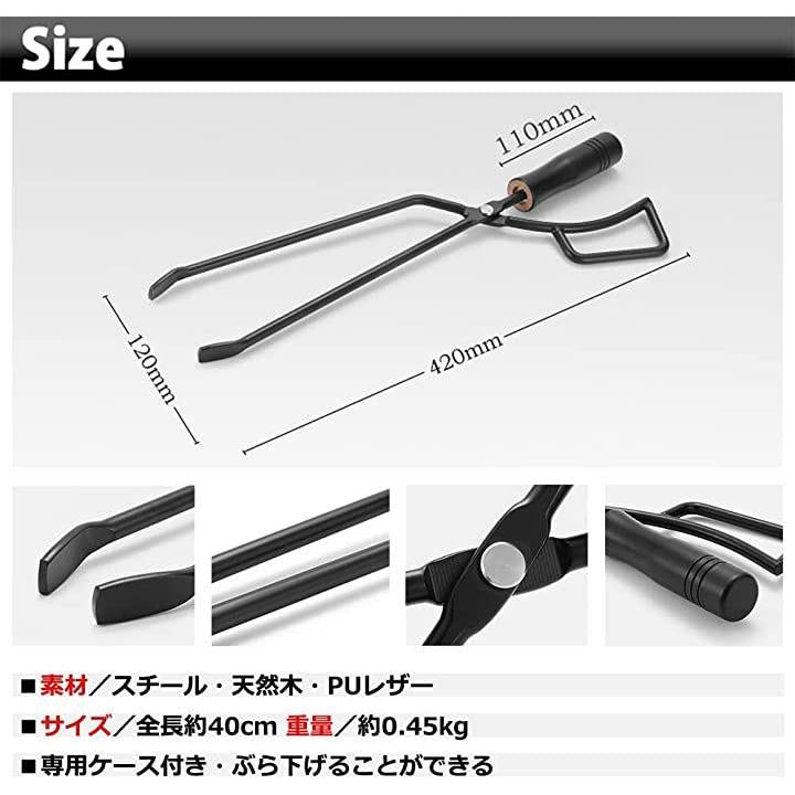 薪ばさみ 炭ばさみ トング ファイヤープレーストング 火ばさみ アウトドア キャンプ バーベキュー用 焚き火 薪はさみ 収納ケース付き