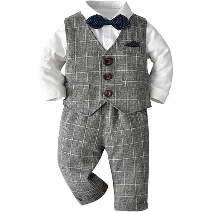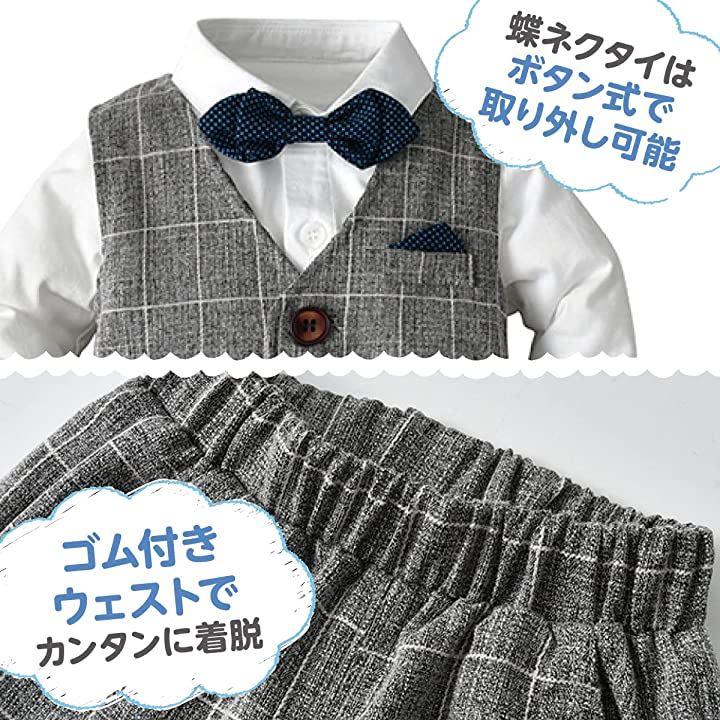 しあわせ倉庫 男の子 キッズ スーツ フォーマル セットアップ ベスト 初節句 結婚式 七五三 お宮参り 子供服 ベビー服 (グレー, 100cm) |