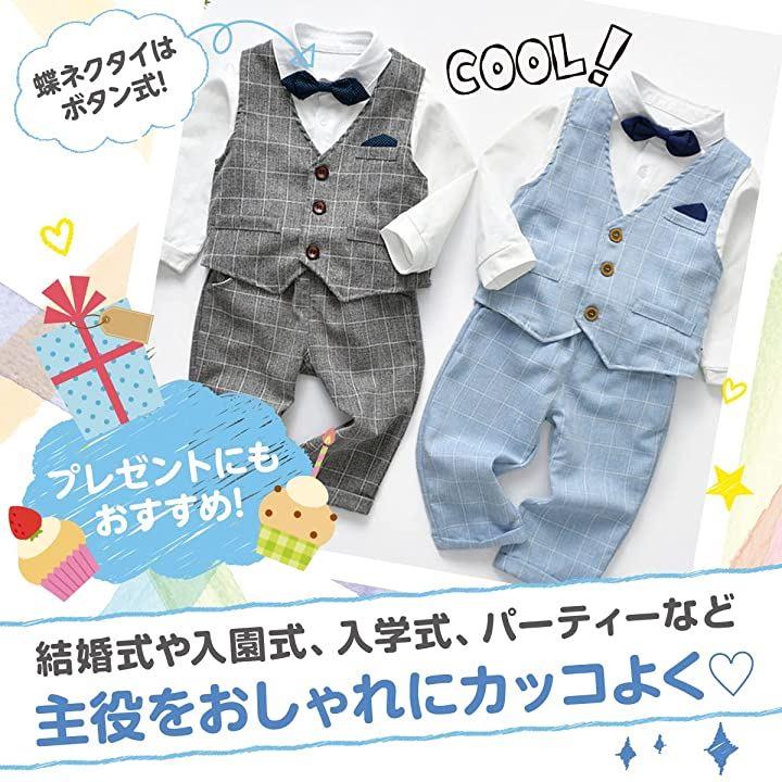 しあわせ倉庫 男の子 キッズ スーツ フォーマル セットアップ ベスト 初節句 結婚式 七五三 お宮参り 子供服 ベビー服 (グレー, 90cm) |