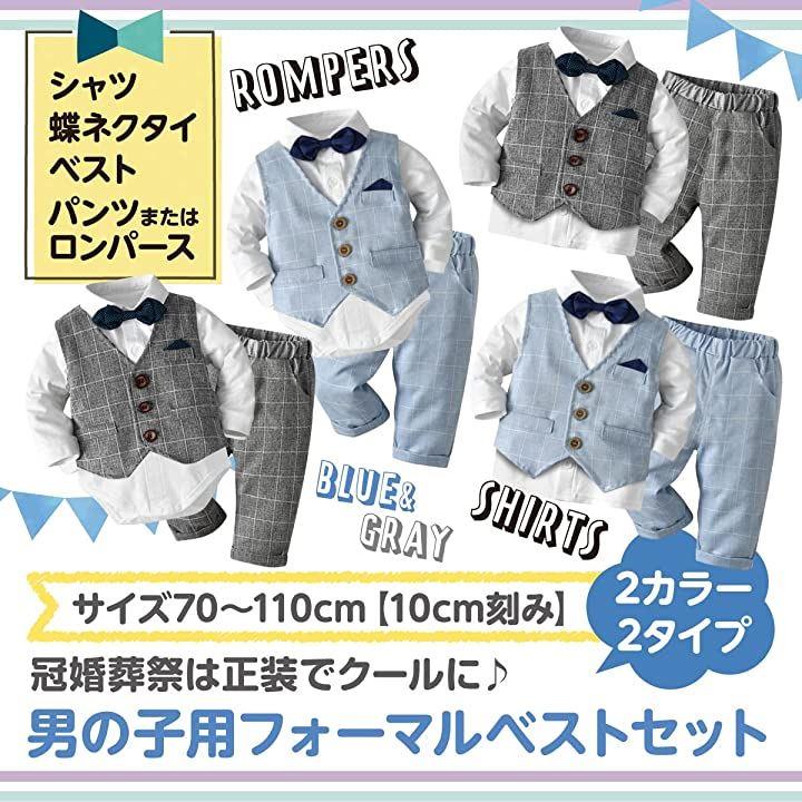しあわせ倉庫 男の子 キッズ スーツ フォーマル セットアップ ベスト 初節句 結婚式 七五三 お宮参り 子供服 ベビー服 (ロンパースタイプ)) |
