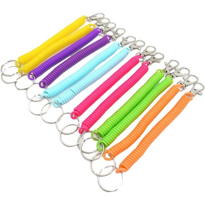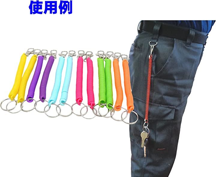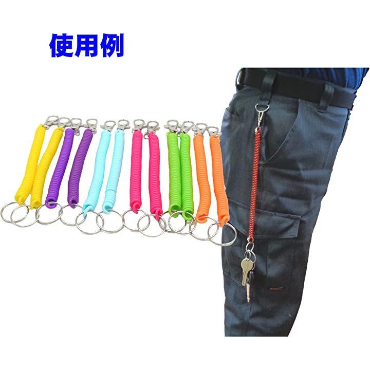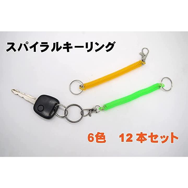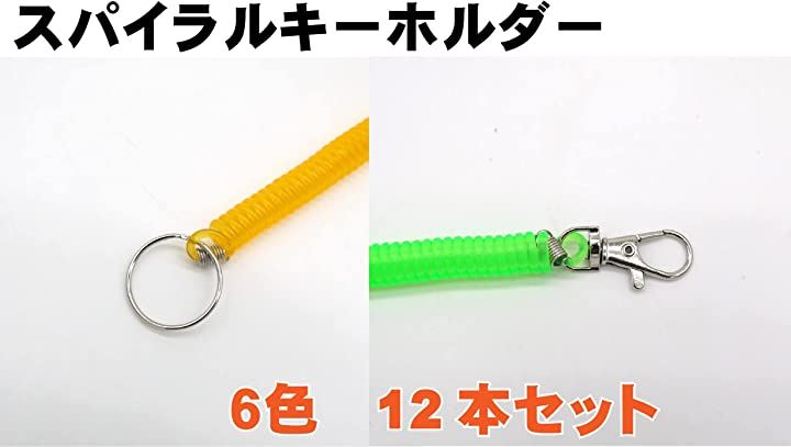 スパイラル キーリング キーホルダー スパイラルキーチェーン コイルストラップ 伸びる 12点セット カラビナ付き 紛失防止