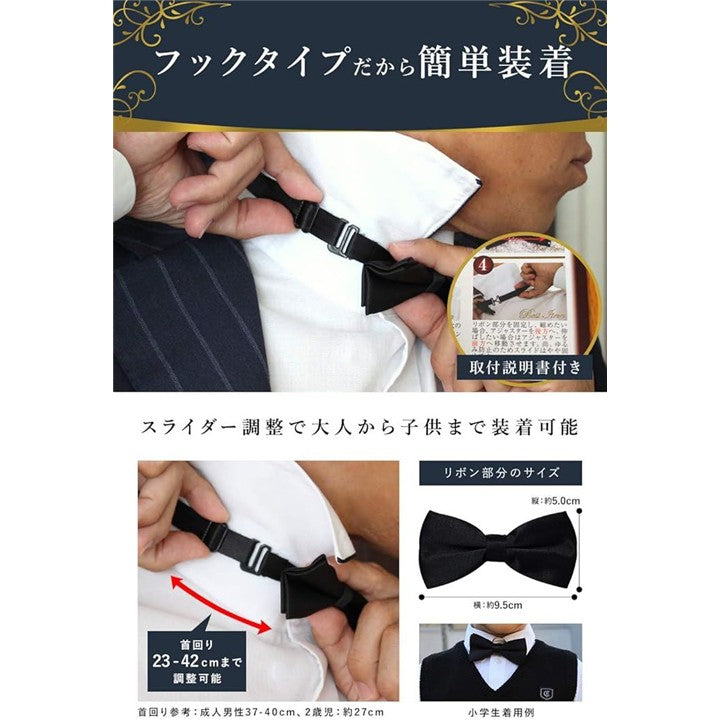 蝶ネクタイ メンズ キッズ 結婚式 ワンタッチ 無地 ボウタイ リボン 簡単 フック