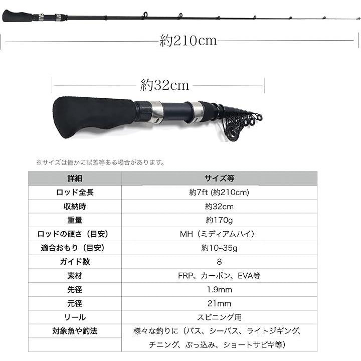 コンパクトロッド 約210cm スピニング用 収納時約32cm 収納ケース付き フィットグリップ
