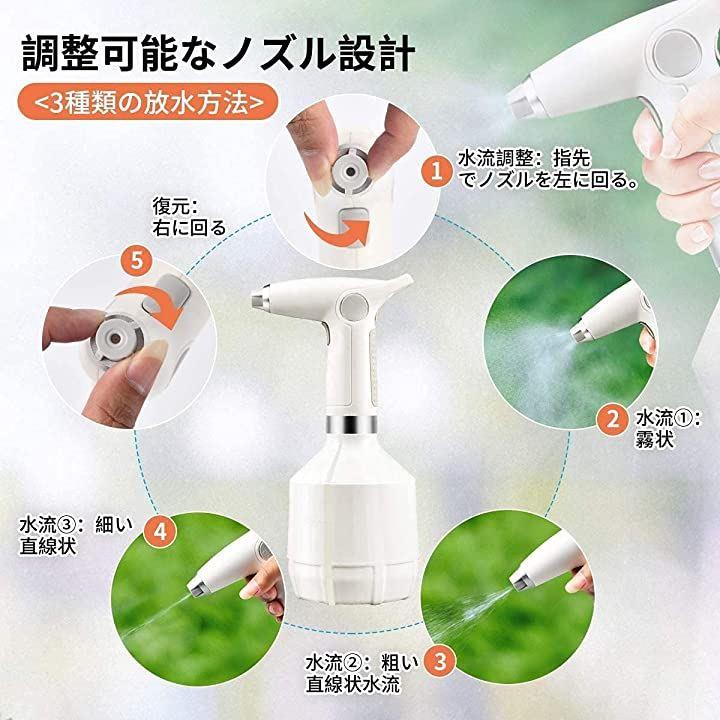 電動じょうろ 霧吹き スプレー 電動式 噴霧器 手圧なし 自動 細かい USB充電 スプレー容器 省力化 掃除除菌 園芸 水やり 農薬散布 霧状