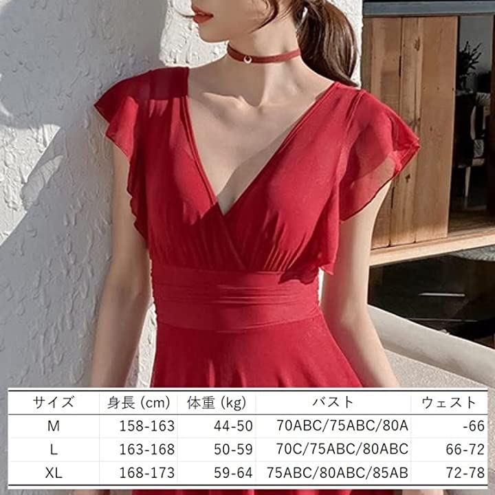 [アイラカリラ] アンリエ ワンピース 水着 Vカット スカート フリル シースルー 単色 胸パッド 付き ビーチウエア スイムウエア レディース (レッド, XL) |