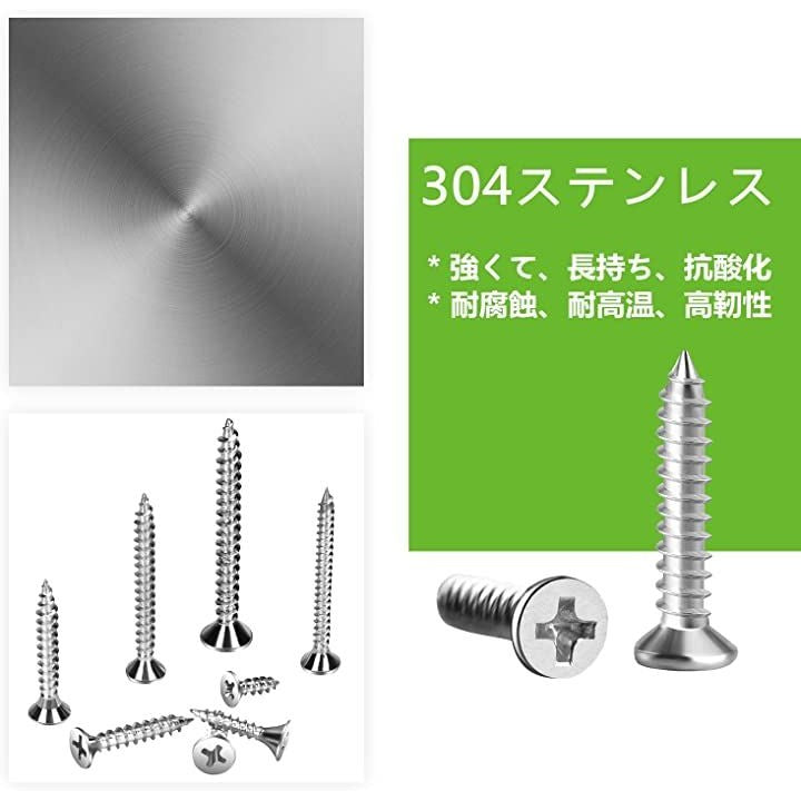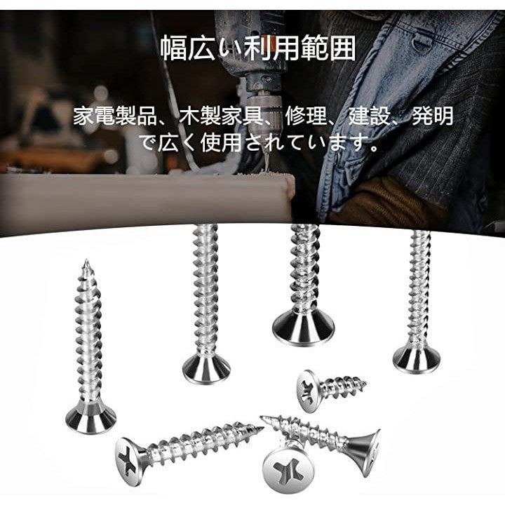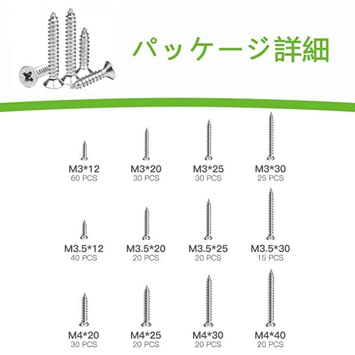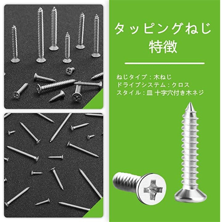 330本入 木ねじ 十字穴付皿 SUS304 ステンレス ビス 皿頭 タッピングねじ スクリューネイル ネジ釘 M3 M3.5 M4 汎用 木工用ビス 修理ツール セット 収納ボックス付き