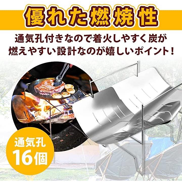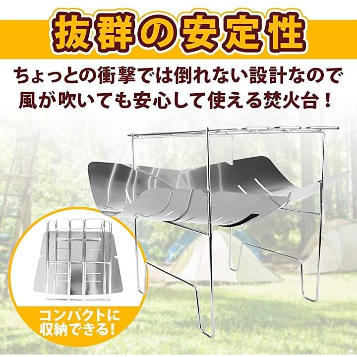 携帯用 焚き火台 ソロキャンプ バーベキュー アウトドア 軽量 ステンレス製 組み立て スピット付き