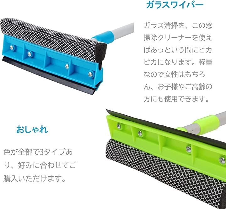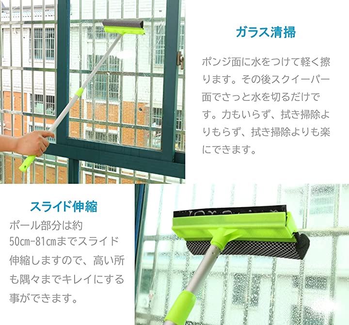ガラスワイパー 高所掃除 窓クリーナー スクイジー 伸縮 両面 水切りワイパー ガラス掃除