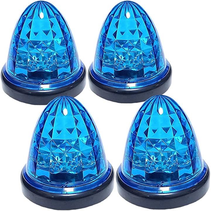 「互換品」Customize(カスタマイズ) 24V トラック用 LED マーカーランプ サイド マーカー クリスタルカット仕様 16LED 汎用 (4個, ブルー) |