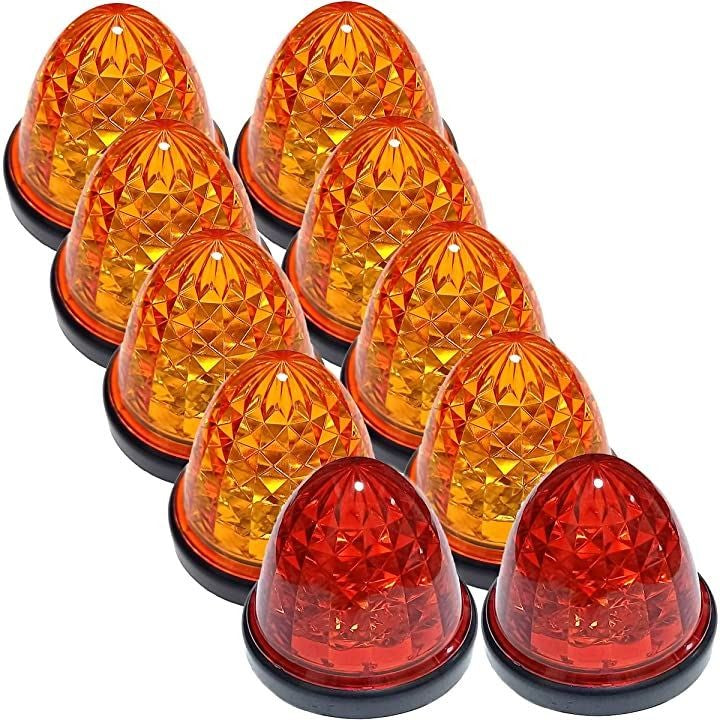 「互換品」Customize(カスタマイズ) 24V トラック用 LED マーカーランプ サイド マーカー クリスタルカット仕様 16LED 汎用 イエロー/レッド/ホワイト/アンバー 各色 (10個, オレンジ) |