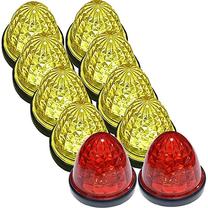 「互換品」Customize(カスタマイズ) 24V トラック用 LED マーカーランプ サイド マーカー クリスタルカット仕様 16LED 汎用 (10個, イエロー / レッド) |