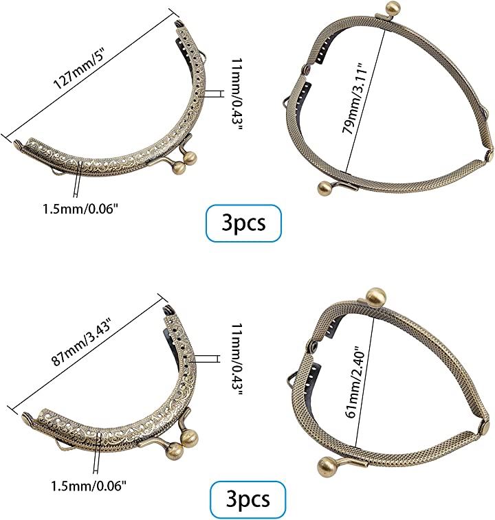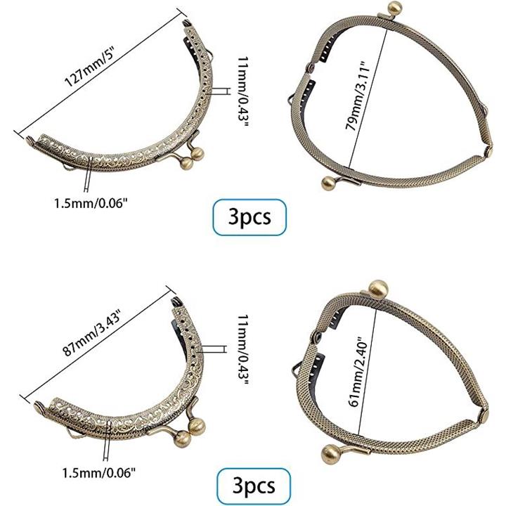 がま口 口金 8.5cm 12.5cm丸型 差し込み式 財布 フレーム 金具 がまぐち口金 アンティークゴールド 6個セット