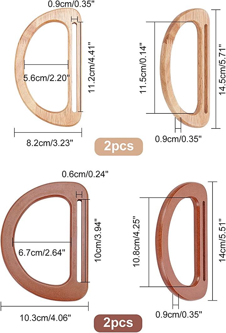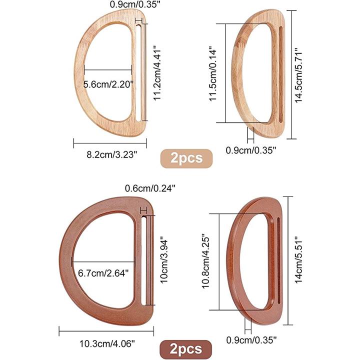 持ち手 木製 木工持ち手 バッグの持ち手 カバン持ち手 手芸 U形 風呂敷ハンドル 丸ハンドル 4個 2色