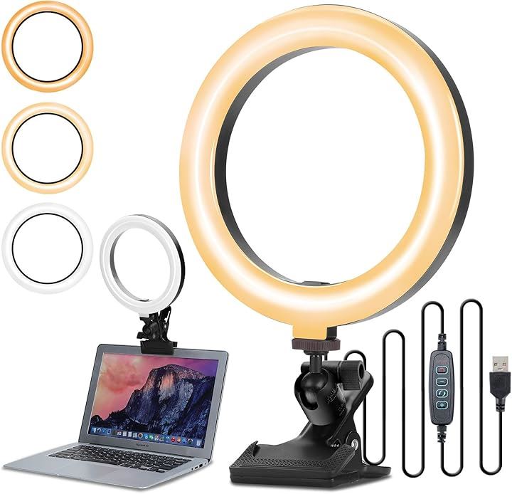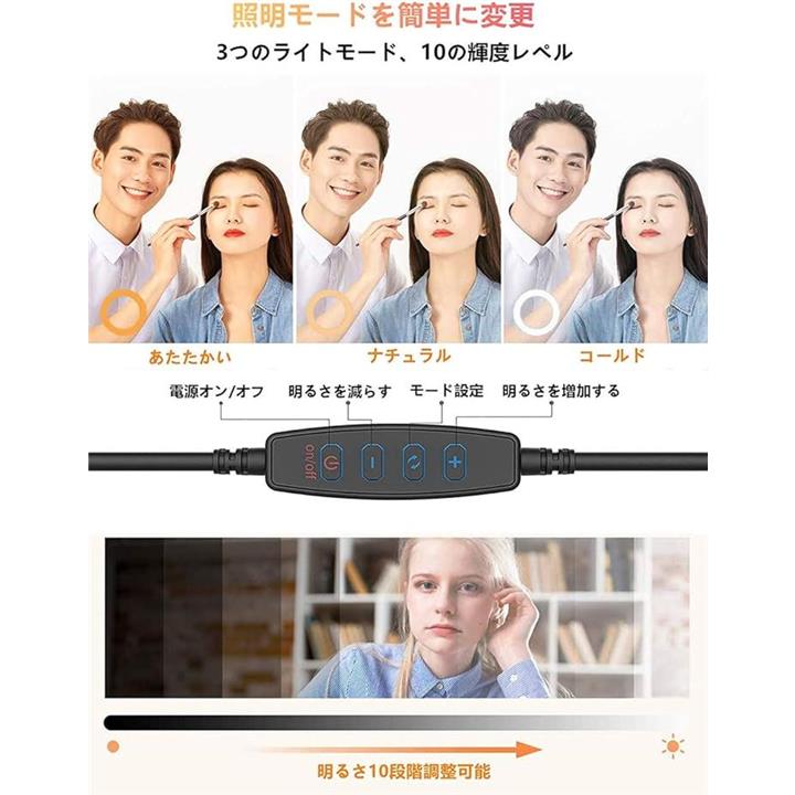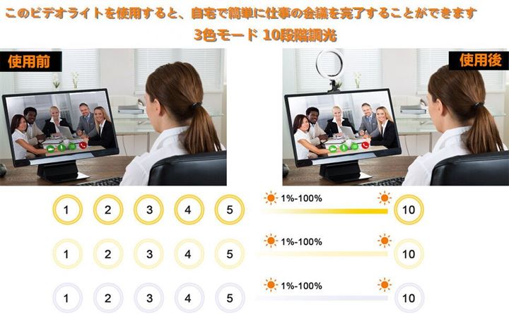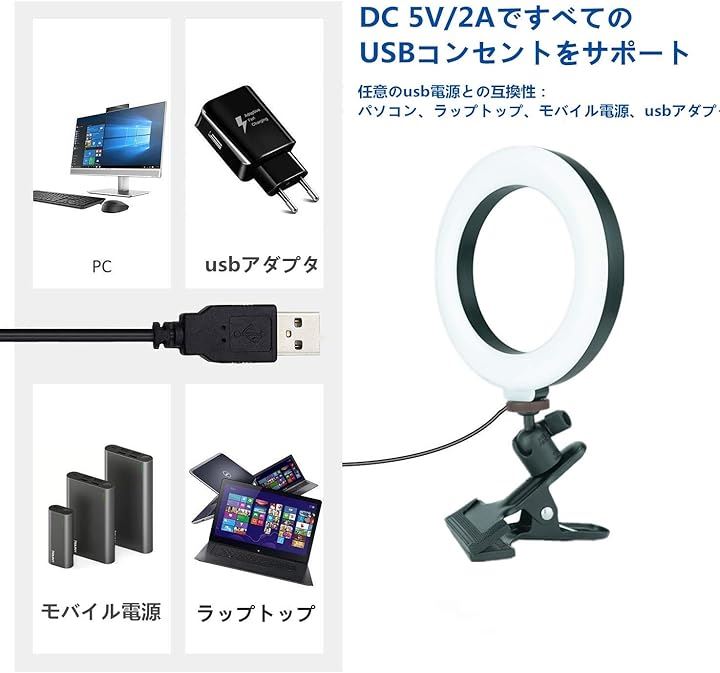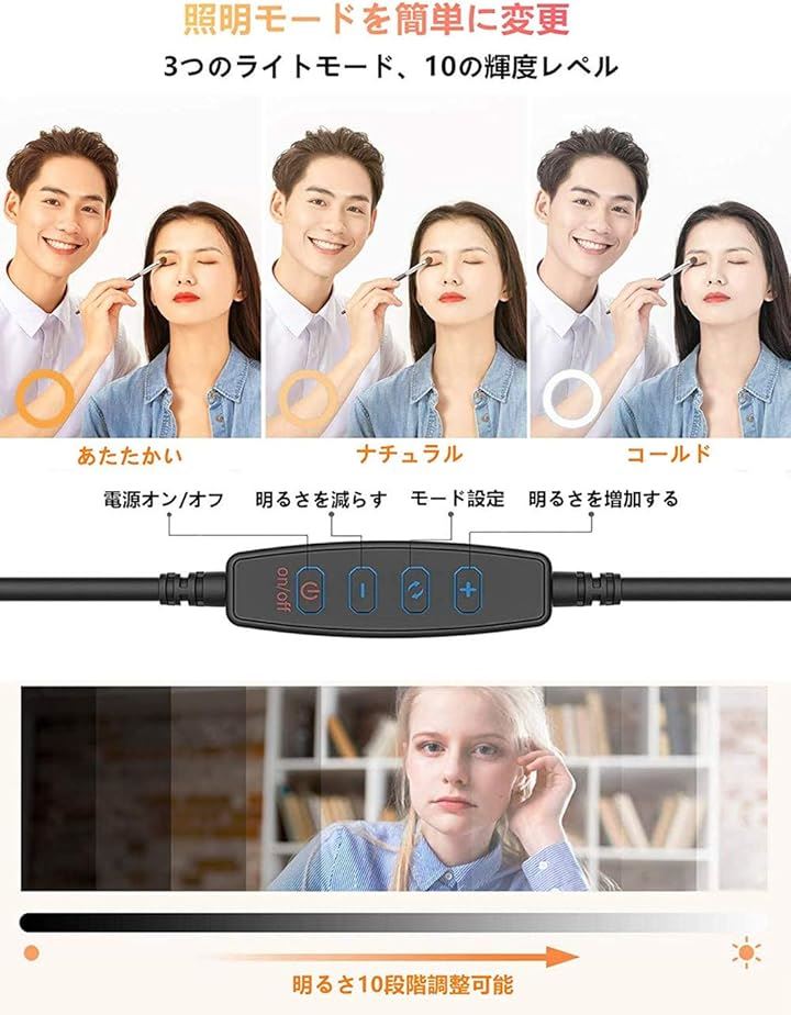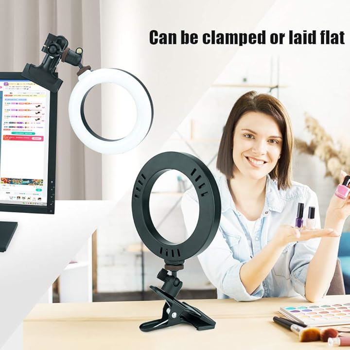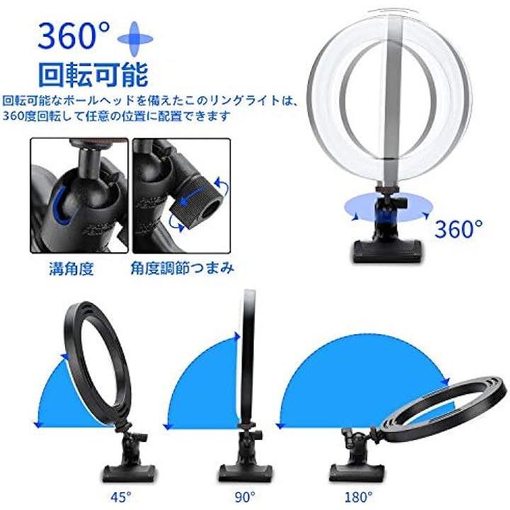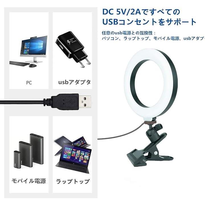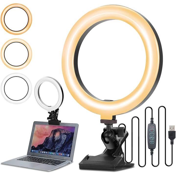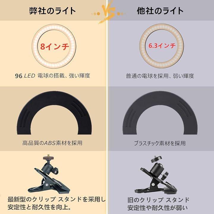 2021最新版 リングライト 8インチ LEDビデオライト クリップ式 照明用ライト 高輝度 卓上ライト 自撮り補光 ビデオカメラ撮影 3色モード 10段階調光 A項