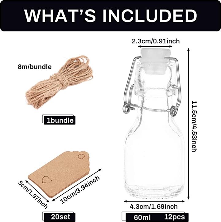 12個60ml スイング ボトル ガラス 瓶 30枚値札付き 保存瓶 ガラスボトル