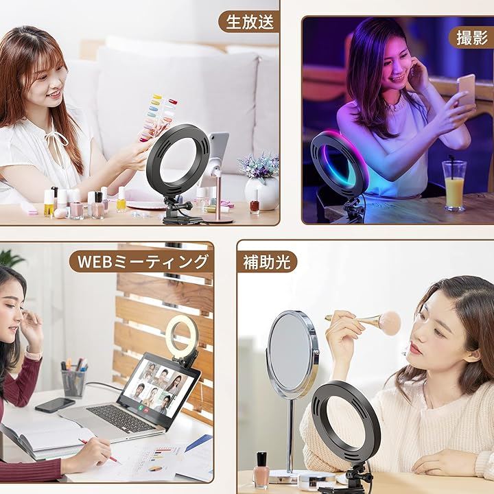 部屋の照明が暗く、顔色が悪く見えてしまう方や、ライブ配信やウェビナーなどできれいに動画を撮りたい方におすすめです。