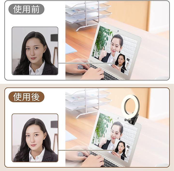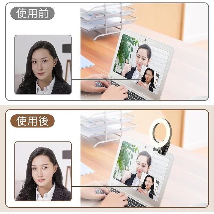 本製品を使用することで、画面が明るくなり、撮影クオリティの向上やオンライン会議での印象アップに役立てることができます。