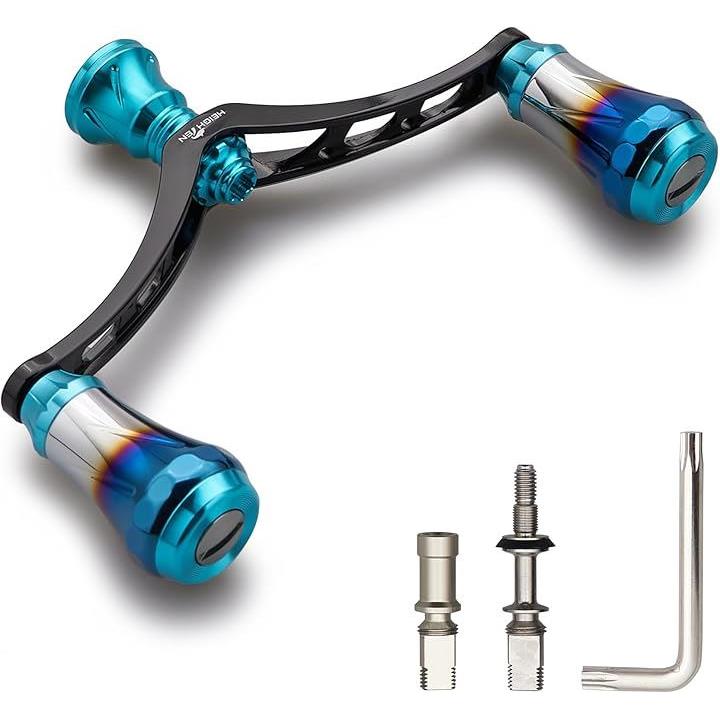 HEIGHTEN 改良 98mm リール ハンドル 6色 70航空アルミ製 シマノ ダイワ 通用 スピニングリール 用 Arch Aurora (ターコイズ&ブラック) (98) |