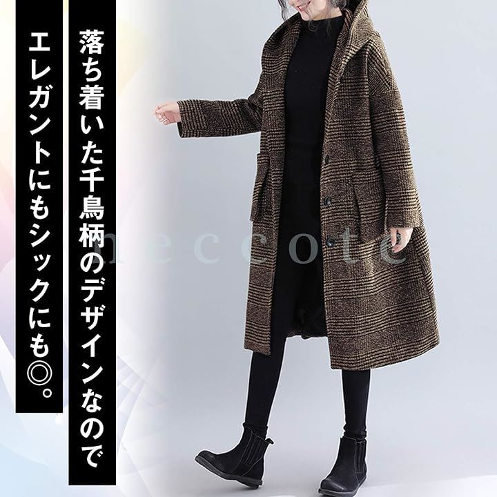 コート レディース アウター フード付き グレンチェック ジャケット 厚手 防寒 NC219BNL