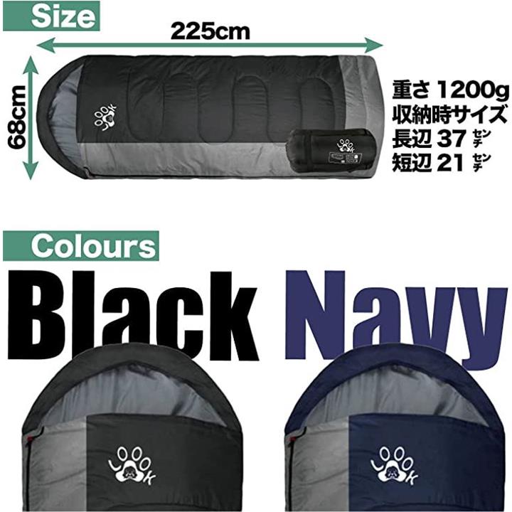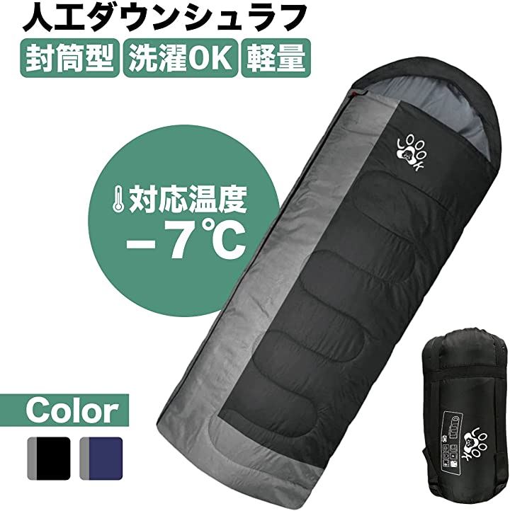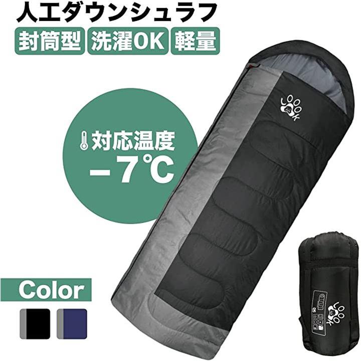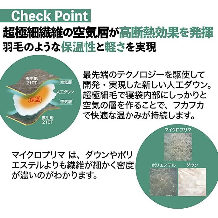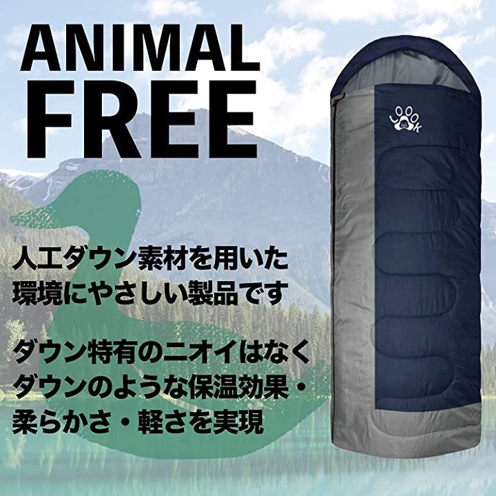人工ダウン 寝袋 封筒型 軽量 保温 210T シュラフ コンパクト アウトドア 丸洗い可能 収納パック付き