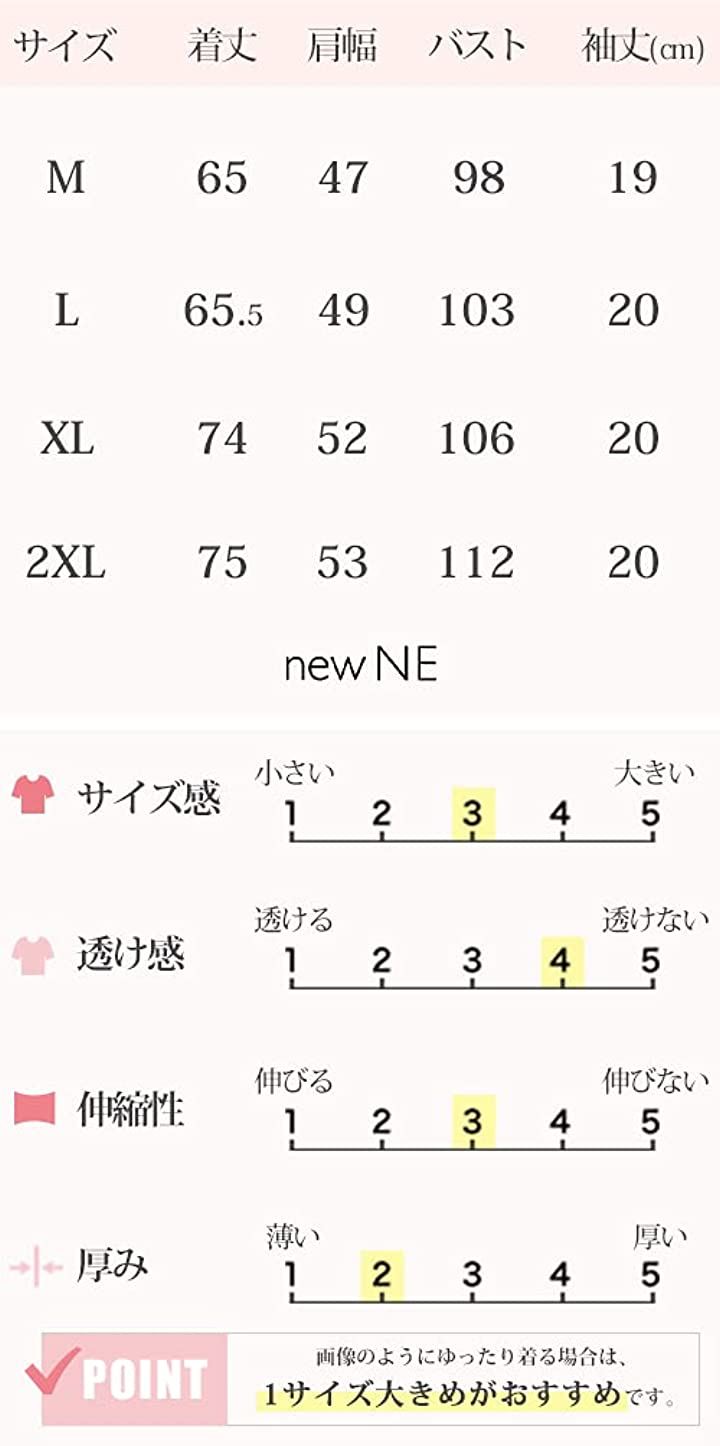 ・サイズ:着丈/肩幅/バスト/袖丈/(cm)「M」65/47/98/19「L」65.5/49/103/20「XL」74/52/106/20 「2XL」75/53/112/20