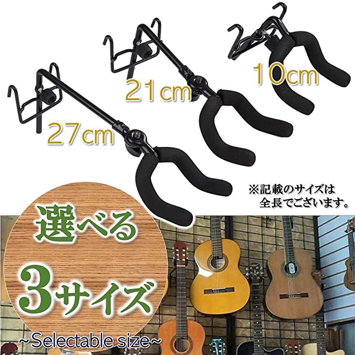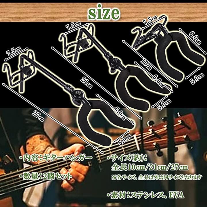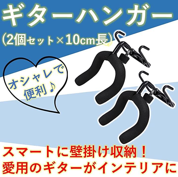 ギターハンガー ディスプレイ ギタースタンド ショート ロング 2個セット フックタイプ 黒 10cm