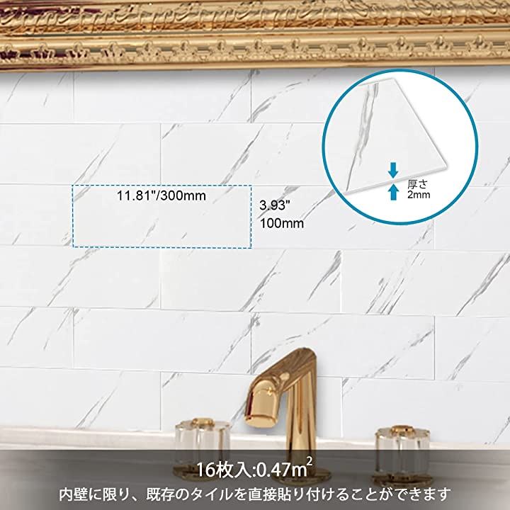 大理石調の地下鉄のタイルシール キッチン 耐熱 防水 壁 シート 洗面所 トイレ