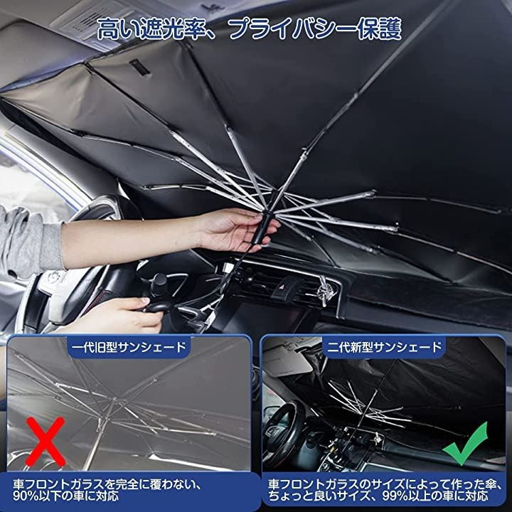 2022最新 車用サンシェード 折り畳み傘型 L 150x81cm