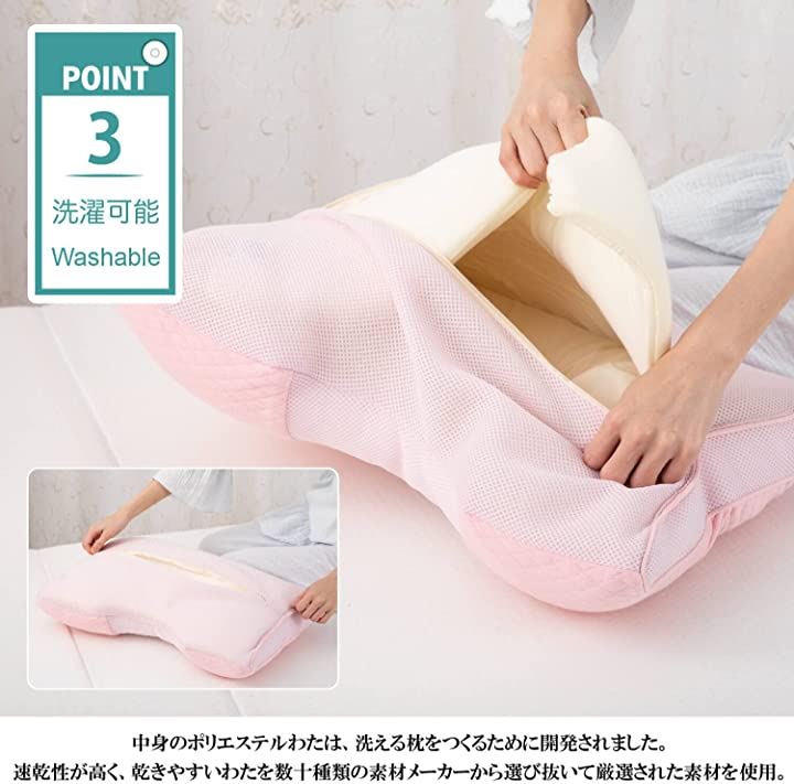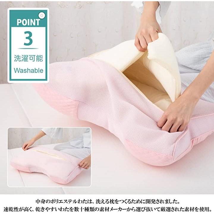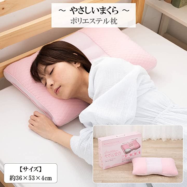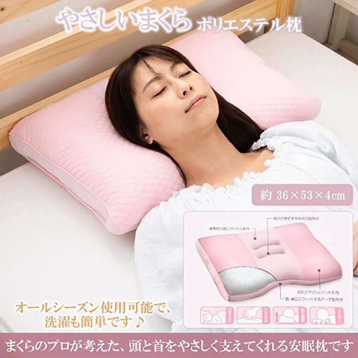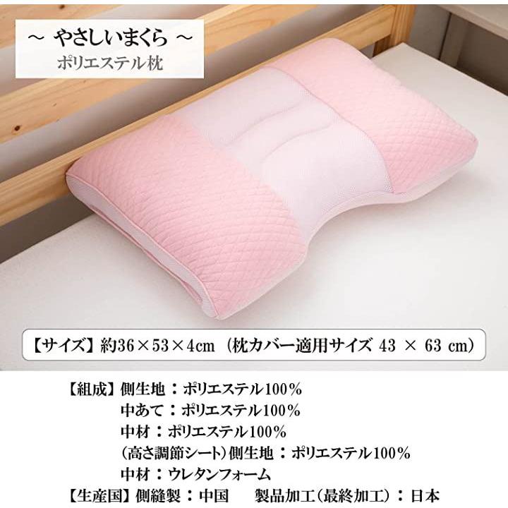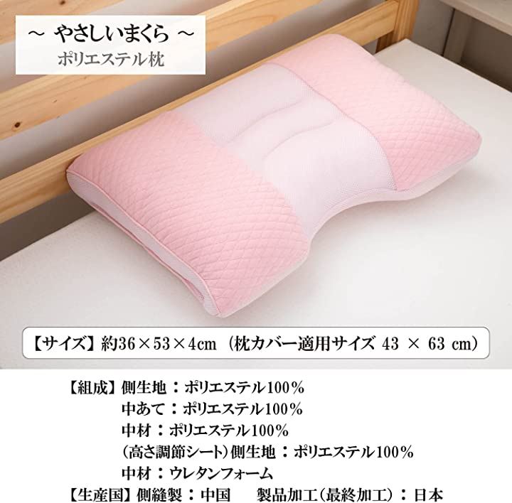 枕 ポリエステル まくら 高さ調整 洗える 約36x53x4cm 日本製 枕カバー 適用サイズ 43 x 63 cm ピンク
