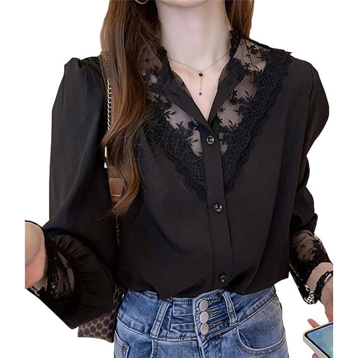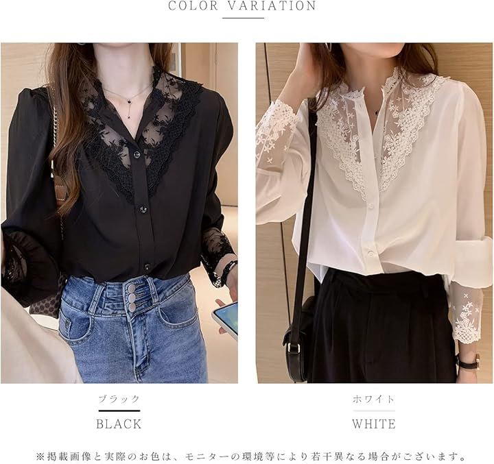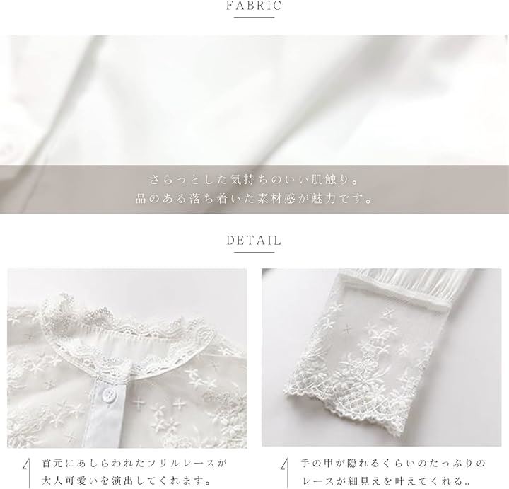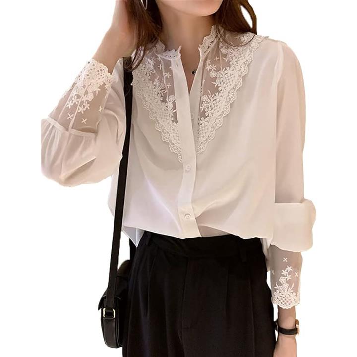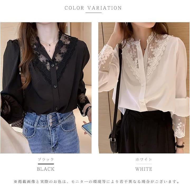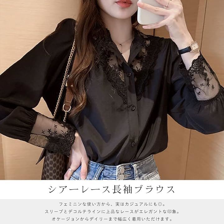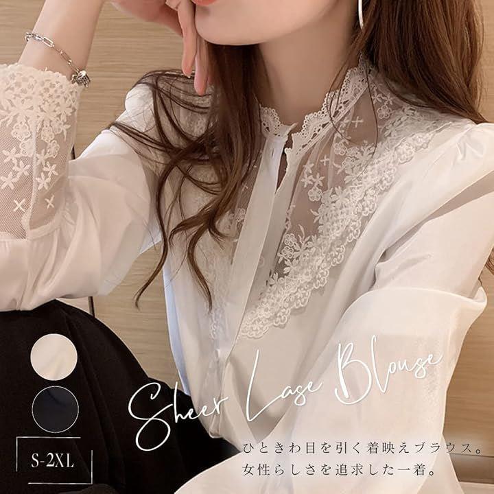 [ウェアビー] ブラウス 長袖 レース シャツ シースルー きれいめ ボタン シフォン 花柄 レディース とろみ ドレス 刺繍 上品 春物 夏物 春夏 |