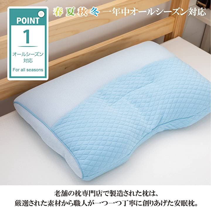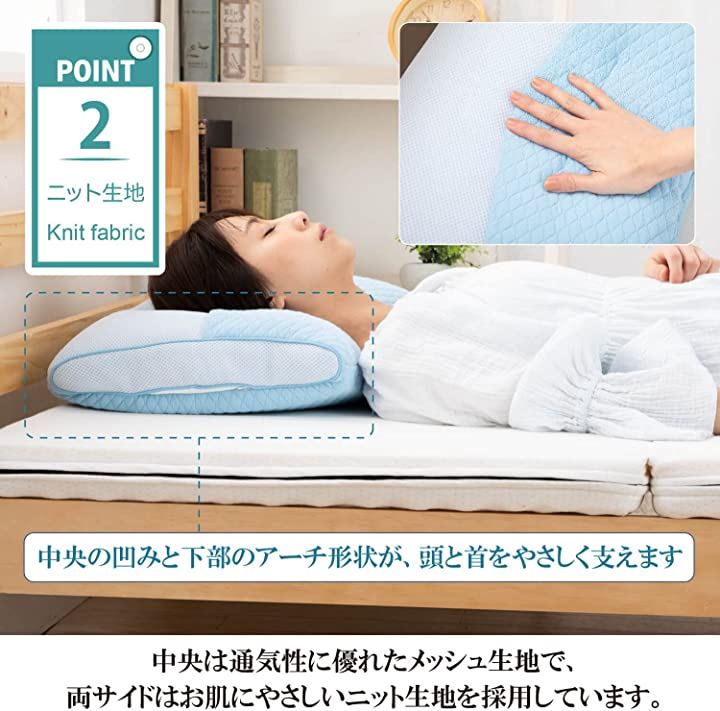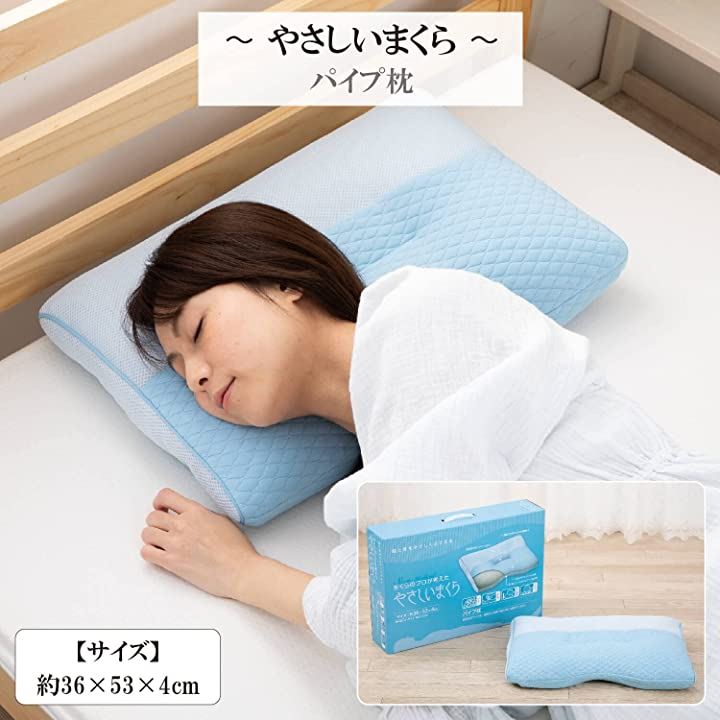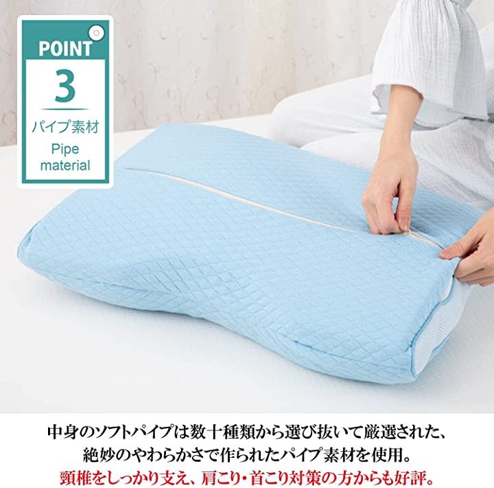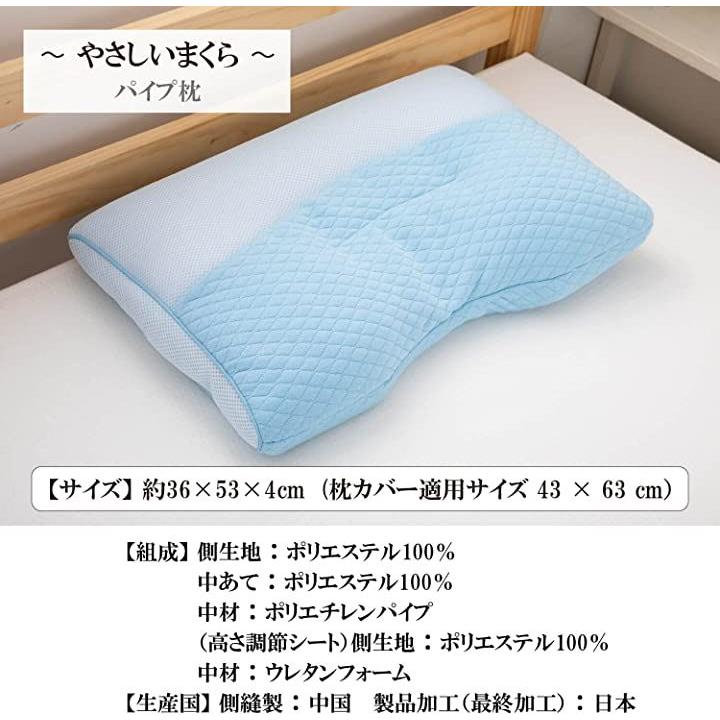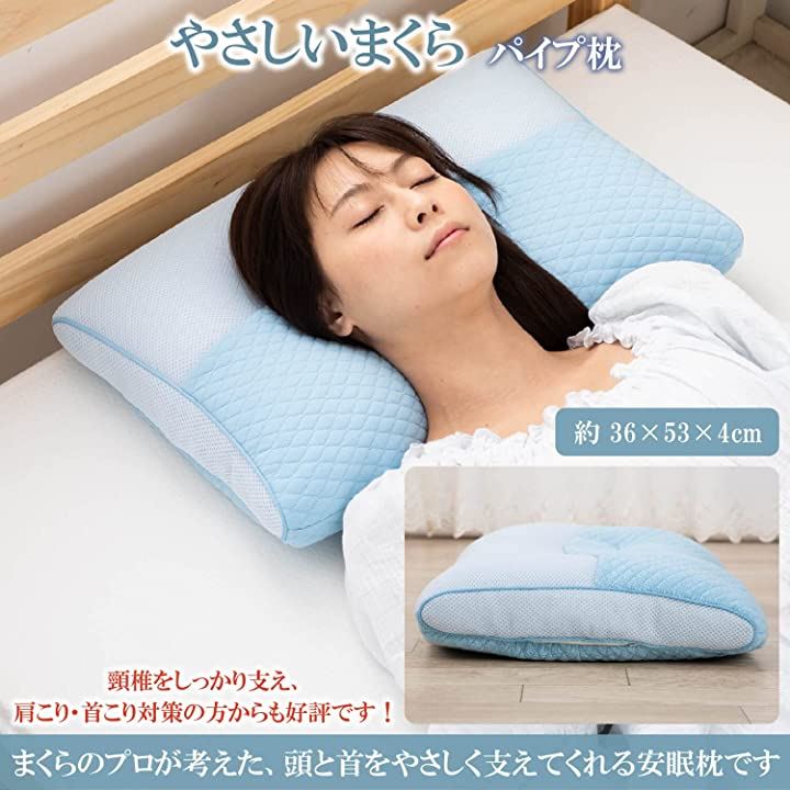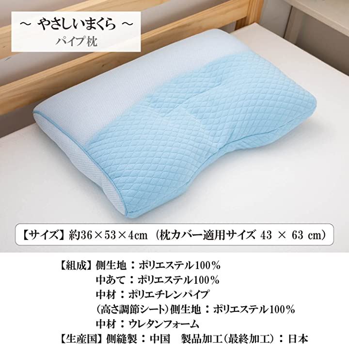 枕 パイプ枕 ソフトパイプ 洗える 約36x53x4cm 枕カバー 適用サイズ 43 x 63 cm ブルー