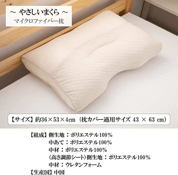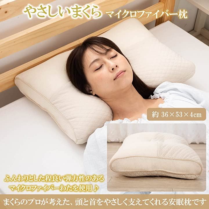 枕 マイクロ マイクロファイバー マイクロファイバー綿 約36x53x4cm 枕カバー 適用サイズ 43 x 63 cm ベージュ