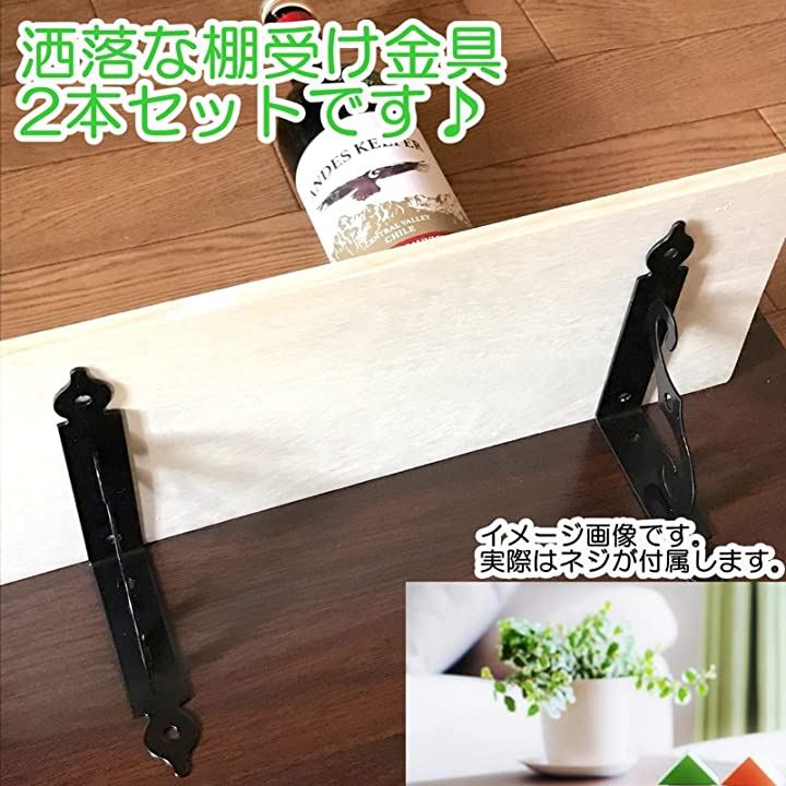 棚受け金具 l字 アイアン ブラケット インテリア シェルフ 187x140mm ブラック