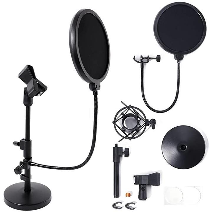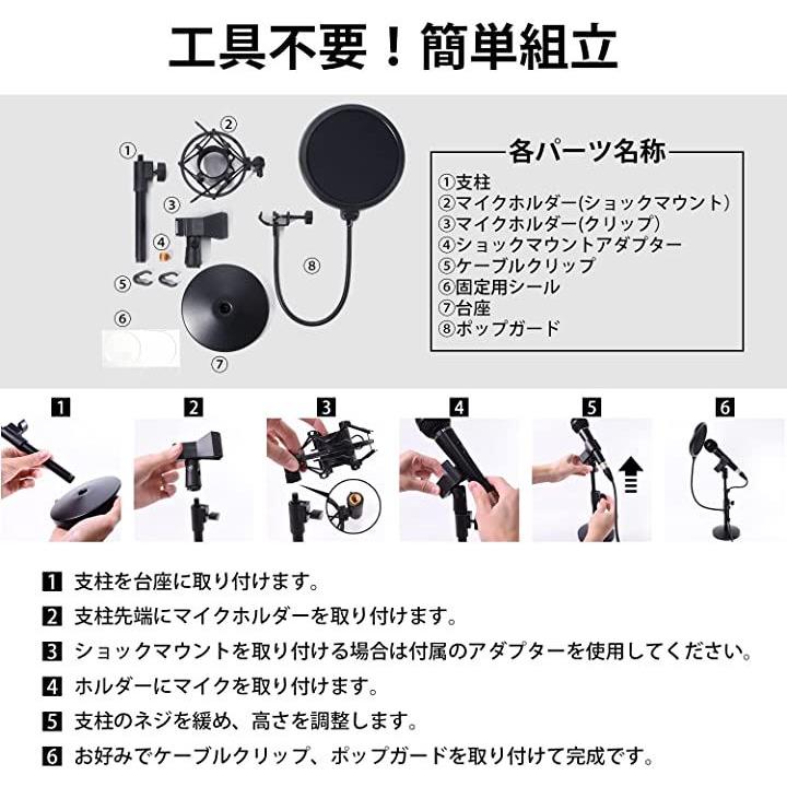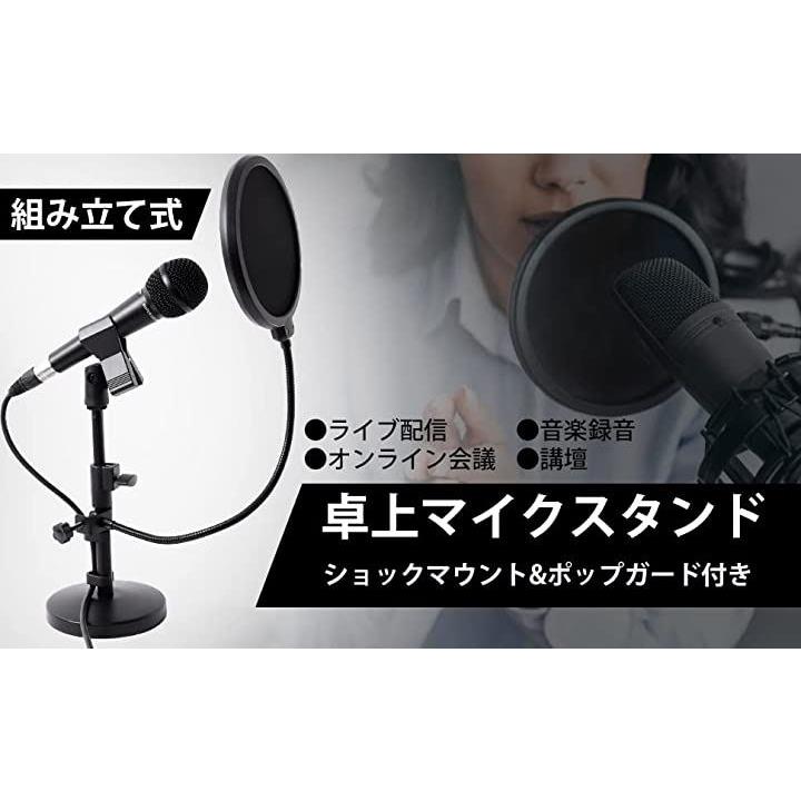 マイクスタンド 卓上 スタンドマイク ポップガード ショックマウント 固定シール付き ダイナミックマイク コンデンサーマイク用 卓上 マイク スタンド ストレート セット |