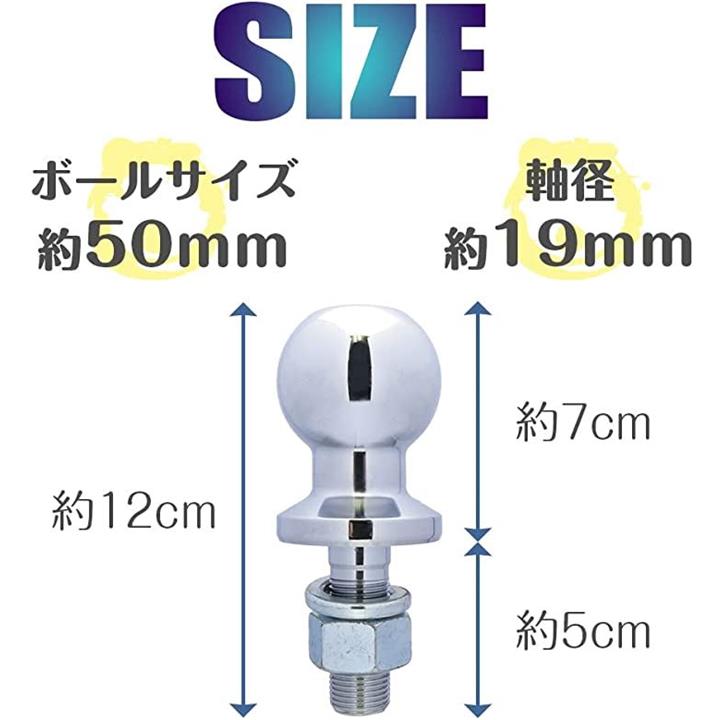 スチール製 ヒッチボール 軸19mm ヒッチメンバー キャンピングカー ボートトレーラー 牽引 直径50mm