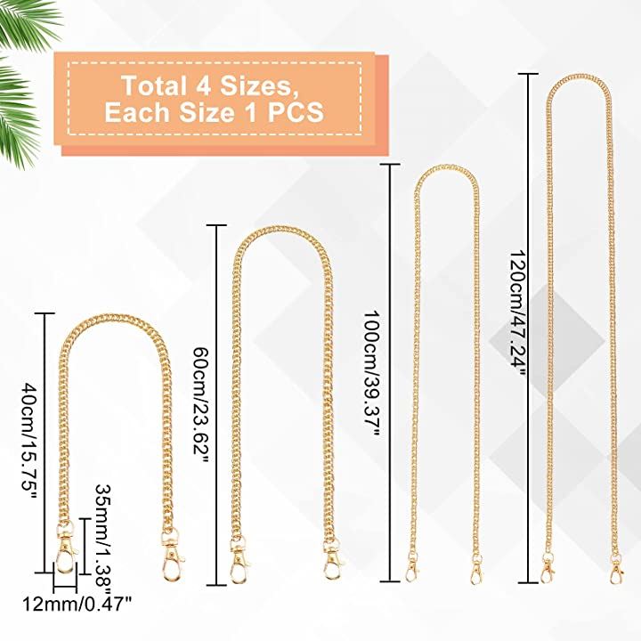 4本入り 4スタイル メタルバッグチェーン ゴールド 交換用 肩掛け ハンドバッグ 持ち手 ショルダー DIY ハンドメイド