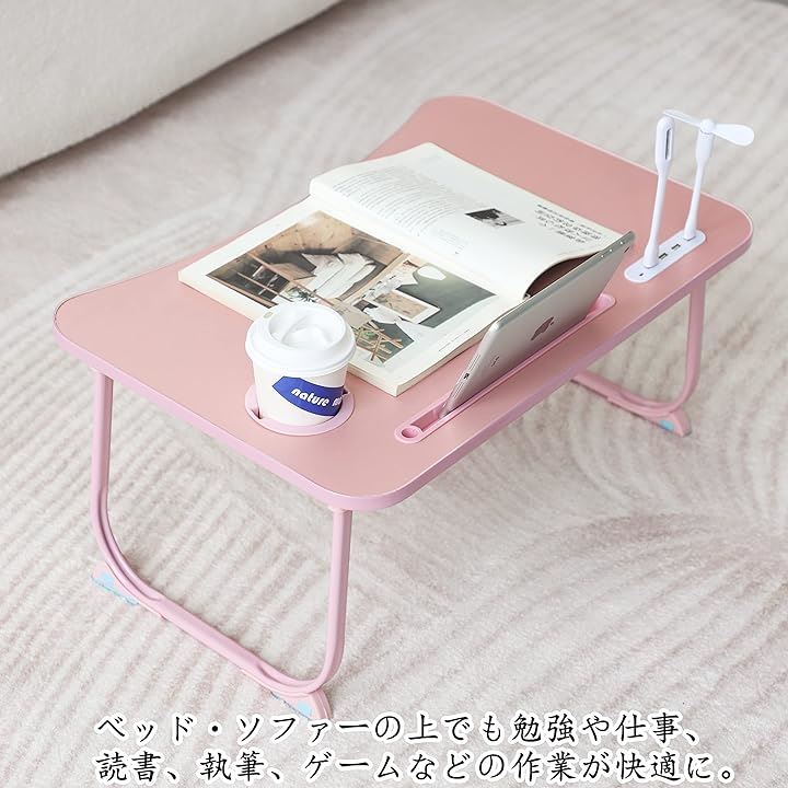 「2023年NEW多機能 折りたたみ ローテーブル」折り畳みテーブル 折りたたみミニテーブル ローテーブル 折りたたみ(USB読書灯とファンが付属しています)(ピンク) |