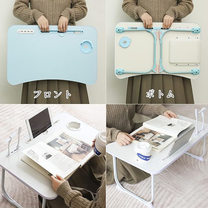 「2023年NEW多機能 折りたたみ ローテーブル」折り畳みテーブル 折りたたみミニテーブル ローテーブル 折りたたみ(USB読書灯とファンが付属しています)(ブルー) |