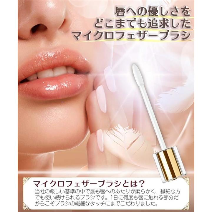 「 塗りやすくしなやかで柔らかいブラシとプレゼントにもぴったりなキラキラパッケージ」リップグロスの中身が一度にたっぷりと唇に付くようにブラシを厳選しました。