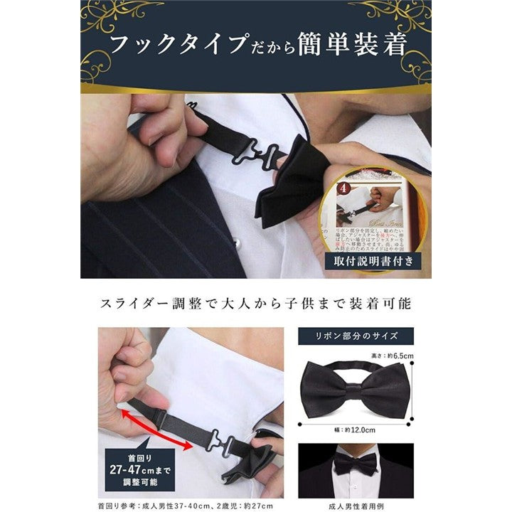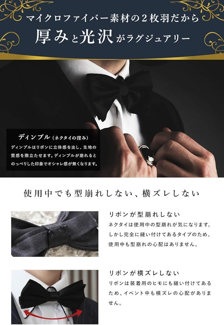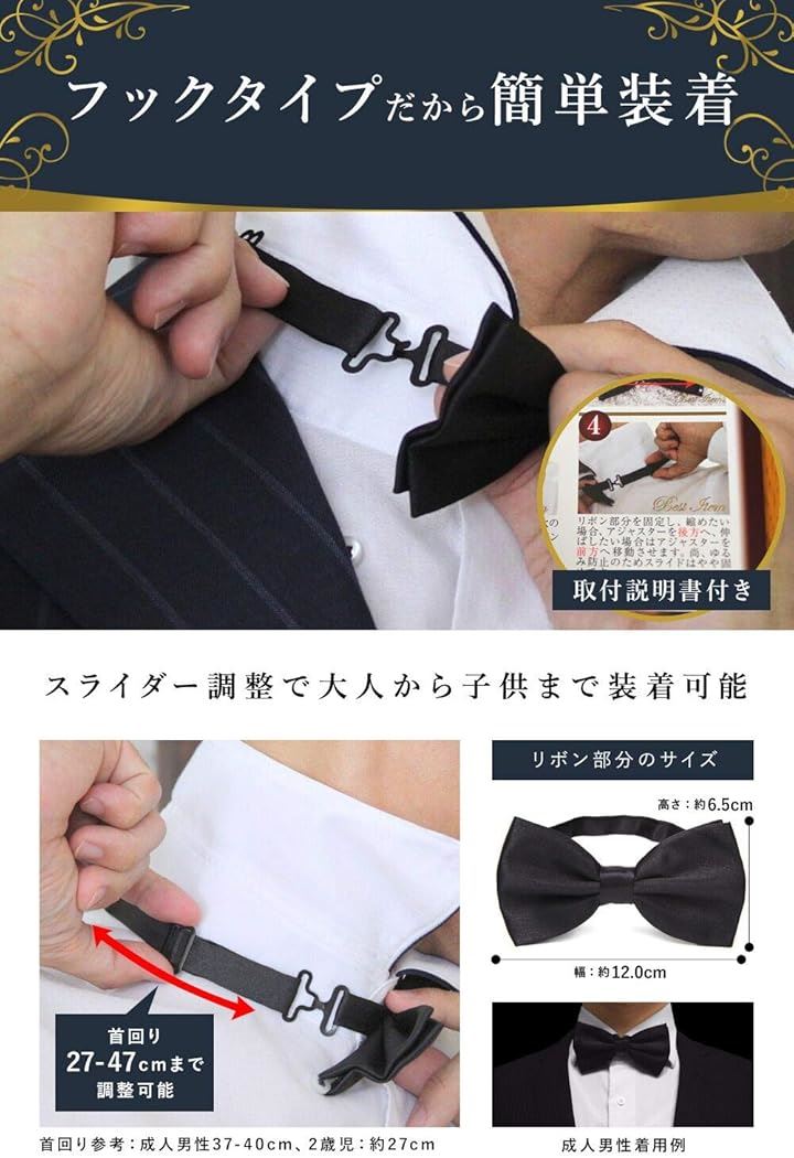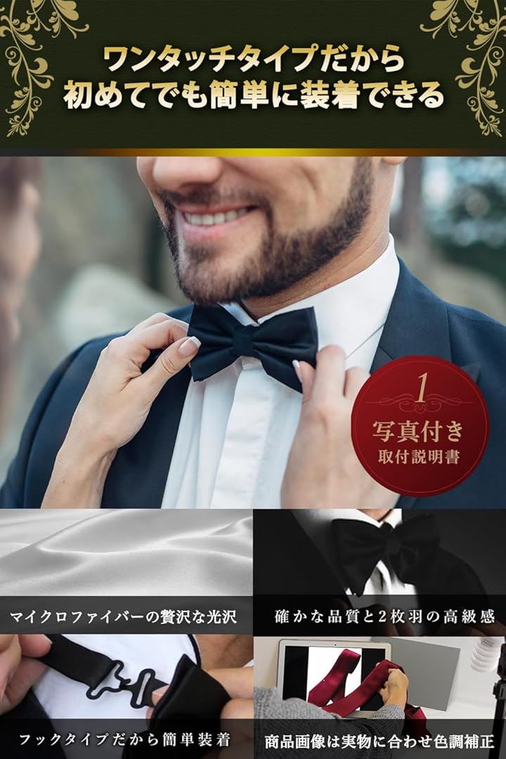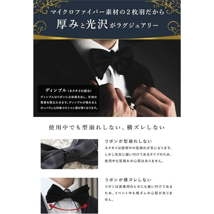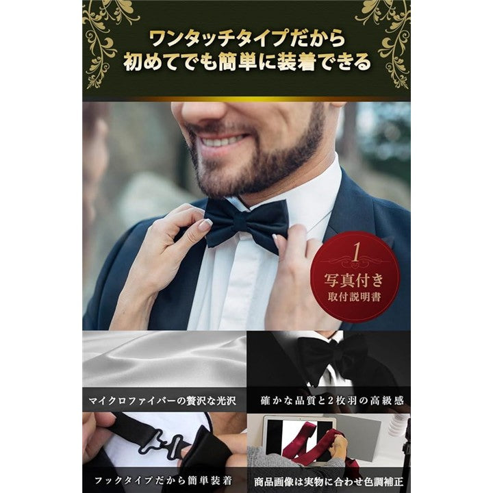 ベストアイテム 蝶ネクタイ メンズ 無地 シルク調 ワンタッチ 装着 リボン 固定型